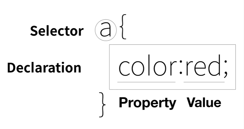 - 반면에 위에 있는 <style></style>태그는 속성만 가지고 있어서는 누구게에게 그 효과를 지정할 지를 모르기 때문에 선택자라는 코드가 필요하게 된다. 이 웹페이지에서 저 효과를 누구에게 주고 싶은지를 선택하는 "선택자=selector". 여기서 나오는 속성을 효과=declaration이라고 함