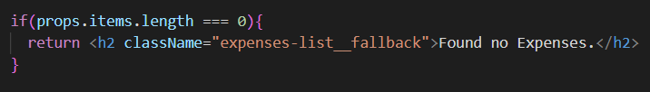 - length가 0이면 No Expenses Found를 띄어주고, else 부분에는(지출 목록에 아이템이 있다면) 아이템들을 띄워주는코드를 작성해준다.