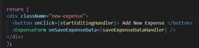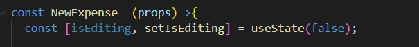 - form은 <ExpenseForm> 컴포넌트고 NewExpense 컴포넌트에서 랜더링되고 있다. 그 위에 form을 활성화 시킬 수 있는 <button>을 만들어준다.