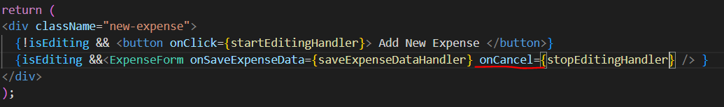- <ExpenseItem>컴포넌트에서 form을 취소할 수 있는 cancel 버튼도 만들어준다.